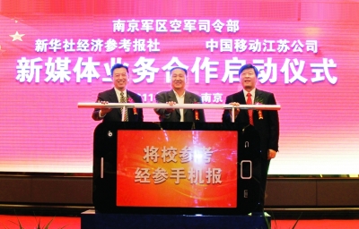 11月8日,南京軍區(qū)空軍通信系統(tǒng)、中國移動通信集團江蘇有限公司和新華社經(jīng)濟參考報社,在南京舉行三方新媒體業(yè)務合作啟動儀式。
