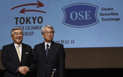 日本東京證券交易所和大阪證券交易所22日宣布,定于2013年1月合并!