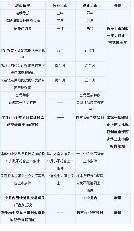為避免創(chuàng)業(yè)板公司暫停上市以后通過各種調(diào)節(jié)財務指標的方式規(guī)避退市,擬完善創(chuàng)業(yè)板公司恢復上市的審核標準,對暫停上市公司恢復上市的財務標準參照首次公開發(fā)行和再融資的計算方法,以扣除非經(jīng)常性損益前后的凈利潤孰低作為盈利判斷標準。同時,不支持暫停上市公司通過借殼方式恢復上市。 縮短時間加快退市速度