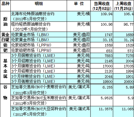 國際大宗商品期貨價(jià)格明細(xì)表[2011-12-05]