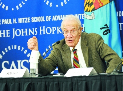 12月7日,在美國約翰斯·霍普金斯大學(xué),諾貝爾經(jīng)濟(jì)學(xué)獎(jiǎng)獲得者羅伯特·索洛就歐債危機(jī)問題發(fā)言。 包括索洛在內(nèi)的多位美國經(jīng)濟(jì)學(xué)家當(dāng)日表示,在歐債危機(jī)持續(xù)發(fā)酵之際,美國應(yīng)當(dāng)采取多種政策手段來構(gòu)建經(jīng)濟(jì)和金融“防火墻”,以減弱歐債危機(jī)對(duì)美國的沖擊。