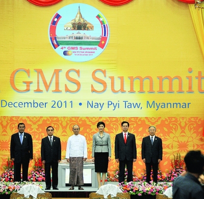 12月20日,大湄公河次區(qū)域經(jīng)濟(jì)合作第四次領(lǐng)導(dǎo)人會(huì)議在緬甸首都內(nèi)比都緬甸國(guó)際會(huì)議中心正式開(kāi)幕。中國(guó)國(guó)務(wù)委員戴秉國(guó)(右一)、柬埔寨首相洪森(左一)、老撾總理通辛(左二)、緬甸總統(tǒng)吳登盛(左三)、泰國(guó)總理英拉(右三)、越南總理阮晉勇(右二)出席會(huì)議。與會(huì)領(lǐng)導(dǎo)人將為次區(qū)域合作未來(lái)十年的發(fā)展確定戰(zhàn)略框架,以推動(dòng)次區(qū)域一體化進(jìn)程,促進(jìn)地區(qū)發(fā)展與繁榮。