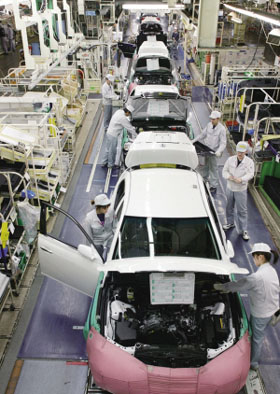 日本大企業(yè)的工廠基本都已實(shí)現(xiàn)高度自動(dòng)化,但是這些企業(yè)并未因此忽視技術(shù)工人的作用。例如,愛知縣豐田市的堤工廠是豐田汽車公司的主要裝配工廠,年生產(chǎn)轎車能力達(dá)40多萬(wàn)臺(tái)。盡管該工廠的車體鍛造、焊接、噴漆等流程基本實(shí)現(xiàn)無(wú)人化作業(yè),但在組裝階段仍安排熟練技術(shù)工人作業(yè)。正因力豐田汽車公司奉行“發(fā)揮‘人機(jī)’結(jié)合優(yōu)勢(shì)”的原則,才得以實(shí)現(xiàn)了高效率、低成本、高質(zhì)量生產(chǎn),并在過(guò)去30多年一直保持日本汽車市場(chǎng)較高占有率。