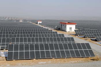 近年來,寧夏回族自治區(qū)利用優(yōu)良的光照條件大力發(fā)展光伏發(fā)電產(chǎn)業(yè)。圖為寧夏發(fā)電集團紅寺堡光伏電站的太陽能電池板。新華社記者 彭昭之/攝 |