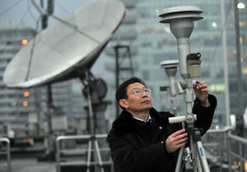 北京市環(huán)境保護監(jiān)測中心工作人員在查看PM2.5的監(jiān)測設備。記者 公磊