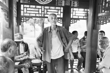 照片為王圪垯村的村民在農(nóng)民公園里唱昆曲 |