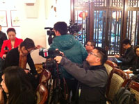 全國政協(xié)委員李稻葵將于今天上午11:00在北京國際飯店接受集體采訪,采訪尚未開始已有二十余位記者提前搶占有利位置,攝影攝像記者也在提前調(diào)試設(shè)備。