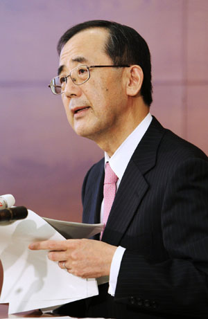 圖為日本央行行長白川方明3月13日在日本首都東京出席新聞發(fā)布會時發(fā)言。