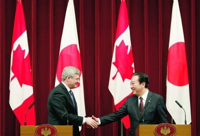 野田佳彥當日與哈珀舉行會談,雙方表示將就簽訂兩國自由貿(mào)易協(xié)定(FTA)舉行談判。這將是日本首次與八國集團成員國舉行類似談判。