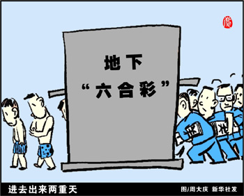 “‘私彩’已成為農(nóng)村地區(qū)深受群眾歡迎的娛樂方式!焙掀浇h看守所內(nèi),因做莊被當(dāng)?shù)鼐叫淌戮辛舻奈槭墟?zhèn)村民劉才(化名)對記者說,“前段時期,村里大到六七十歲的老人,小到十幾歲的青年人,少的花幾元錢試試手氣,多的押上千元甚至上萬元賭賭運氣,已經(jīng)見怪不怪了!