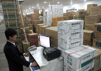 甘肅省藥品應(yīng)急保障動員中心日前在蘭州成立。這個機(jī)構(gòu)依靠甘肅省大型醫(yī)藥物流企業(yè)建成8000平方米的倉儲中心,能夠為重大自然災(zāi)害救援緊急提供至少價值100萬元藥品的應(yīng)急保障。 圖為甘肅省藥品應(yīng)急保障動員中心工作人員閆積平在倉儲中心查看藥品庫存。新華社記者 聶建江/攝 |