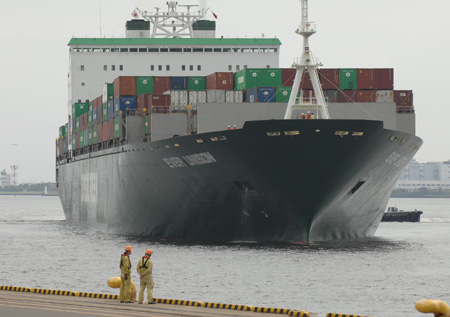 4月19日,在日本東京大井集裝箱碼頭,工作人員在等待貨輪?。 日本財(cái)務(wù)省19日公布的貿(mào)易速報(bào)數(shù)據(jù)顯示,受能源進(jìn)口大幅增加等影響,今年3月份日本出現(xiàn)826億日元(約合10億美元)貿(mào)易逆差。數(shù)據(jù)顯示,3月份日本出口額為6.2042萬(wàn)億日元(約合764億美元),同比增長(zhǎng)5.9%,是六個(gè)月來(lái)首現(xiàn)同比增長(zhǎng),其中汽車及零部件、建筑和采礦機(jī)械等出口增幅明顯。