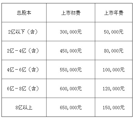 二、股票上市初費(fèi)和年費(fèi)分檔收取,各檔收費(fèi)體標(biāo)準(zhǔn)為: