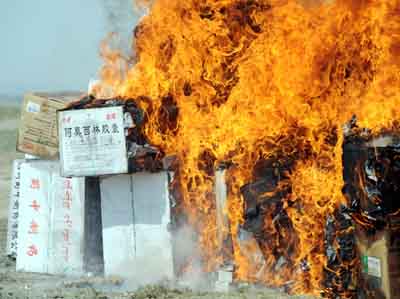 新疆日前在烏魯木齊市西山大浦溝垃圾場集中銷毀鉻超標(biāo)膠囊劑藥品共計9個品種5萬多盒。據(jù)新疆食品藥品監(jiān)督管理局介紹,鉻超標(biāo)藥用問題曝光后,新疆對全區(qū)范圍內(nèi)的藥品生產(chǎn)企業(yè)、醫(yī)療機構(gòu)制劑室、保健食品生產(chǎn)企業(yè)使用膠囊進行檢驗,查封國家食品藥品監(jiān)管局通報的9家生產(chǎn)企業(yè)23個批次鉻超標(biāo)問題藥品中進入新疆區(qū)內(nèi)銷售的問題藥品。