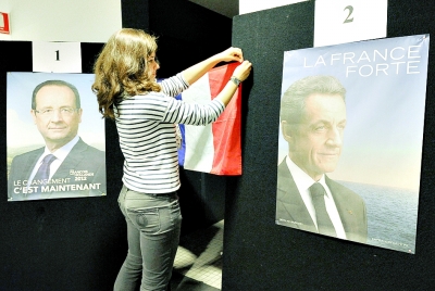 法國總統(tǒng)選舉第二輪投票6日全面展開,現(xiàn)任總統(tǒng)薩科齊和左翼社會(huì)黨候選人奧朗德為下一屆總統(tǒng)職位展開最后角逐。法國本土投票站最晚于當(dāng)晚20時(shí)(北京時(shí)間7日凌晨2時(shí))關(guān)閉,據(jù)悉此后不久即公布初步統(tǒng)計(jì)結(jié)果。 奧朗德主張尋求變革,回應(yīng)選民有關(guān)失業(yè)、購買力、安全等一系列問題的擔(dān)憂,并承諾將引導(dǎo)歐洲重返加速增長和擴(kuò)大就業(yè)的道路。而代表右翼保守勢力的薩科齊主打緊縮、增稅和保護(hù)主義牌。 圖為一名工作人員在澳大利亞悉尼市法語聯(lián)盟語言學(xué)校中設(shè)立的海外投票站點(diǎn)布置會(huì)場。