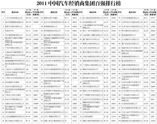2011中國(guó)汽車(chē)流通行業(yè)百?gòu)?qiáng)榜發(fā)布