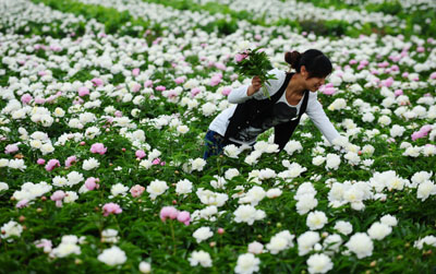 中江白芍系多年生草本藥用植物,人工栽培有300年的歷史。當(dāng)?shù)卣畬嵭小肮?農(nóng)戶+市場”和“公司+業(yè)主(大戶)”的運行模式,除了培育壯大了一批醫(yī)藥企業(yè),還不斷擴大白芍種植面積,配套旅游基礎(chǔ)設(shè)施,依托萬畝芍藥地大力發(fā)展以白芍為特色的中醫(yī)藥養(yǎng)生旅游經(jīng)濟,目前,全國各地眾多游客慕名而來。四川省中江縣集鳳鎮(zhèn)石埡,一位來自成都的游客在芍藥地里采摘芍藥花。