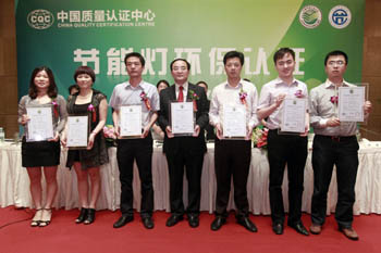 5月15日,中國質(zhì)量認(rèn)證中心頒發(fā)我國首批節(jié)能燈環(huán)保認(rèn)證證書。記者 任正來/攝 |