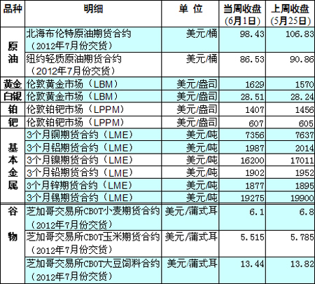 國(guó)際大宗商品期貨價(jià)格明細(xì)表[2012-06-04]