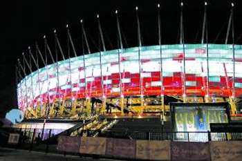 據(jù)介紹,2012年歐錦賽波蘭賽區(qū)有四個比賽場館,分別是位于華沙、格但斯克、波茲南和弗羅茨瓦夫市。目前,這4個比賽場館已經(jīng)準(zhǔn)備就緒,可投入使用。其中,華沙國家體育場距離市中心2公里,是波蘭國內(nèi)最大的一個現(xiàn)代化體育場,是歐錦賽開幕式和主場比賽地,于2008年5月15日正式動工興建,歷時3年多,建設(shè)總投資近19.15億茲羅提(約合6.177億美元),共有58145個座位。