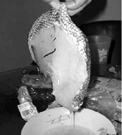 這魚是帶冰賣的,你去了冰就不能賣。但,難道鯧魚和冰一個價?
