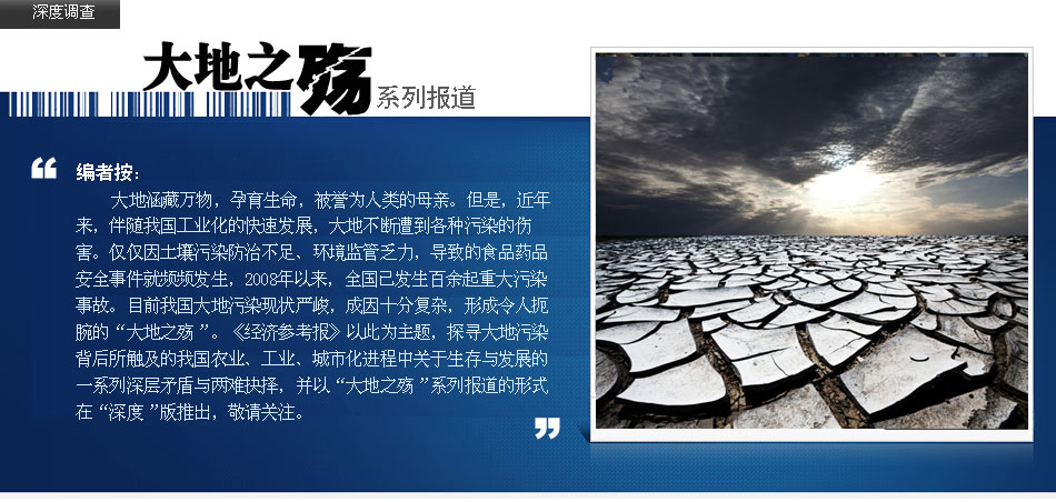 網(wǎng)友渤海易人:大地之殤,危及民生。中華民族萬(wàn)代接傳,是賴于這片土地的養(yǎng)育。但是,當(dāng)今耕地在毀,天地在染。 |