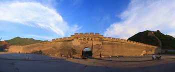 大境門位于張家口市區(qū)北端,高聳入云的東、西太平山之間,是一座聞名遐邇的長城關(guān)隘,扼邊關(guān)之鎖鑰,形勢險要,歷來為兵家必爭之地。門楣上有察哈爾都統(tǒng)高維岳(當(dāng)時的地方軍政首腦)于1927年書寫的四個蒼勁壯觀大字:“大好河山”。
