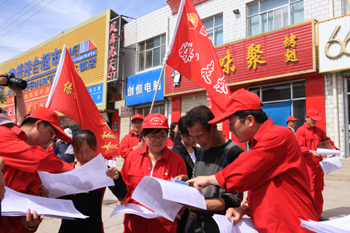 中石油管道公司長慶輸油氣分公司管轄的管道途徑陜甘寧蒙地區(qū),有近千公里,在管道保護(hù)工作中,他們利用一切時機(jī),加大管道法宣傳。圖為在甘肅環(huán)縣山城鎮(zhèn)集市開展管道宣傳活動,工作人員將印有管道法宣傳單和舉報電話的宣傳品送給當(dāng)?shù)匕傩铡?