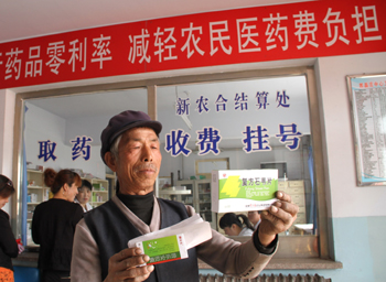 在河北省萬(wàn)全縣郭磊莊中心衛(wèi)生院,一名患者在購(gòu)買(mǎi)零差率銷售的藥品。新華社記者 鞏志宏