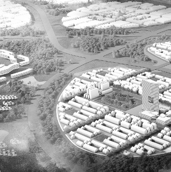 所有8個(gè)區(qū)域均通過(guò)其外緣曲線在周邊環(huán)境中勾勒出建筑體量?紤]到這一特征,各區(qū)域的出入口均按照其核心區(qū)域的位置及區(qū)域和主要道路系統(tǒng)的交叉點(diǎn)進(jìn)行設(shè)置。從各區(qū)域中心廣場(chǎng)內(nèi)延伸出的區(qū)域性道路系統(tǒng)均可明確提供交通方向,并實(shí)現(xiàn)與周邊區(qū)域的直接聯(lián)系。