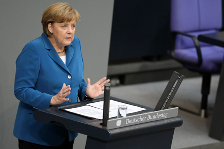 德國總理默克爾27日在聯(lián)邦議會發(fā)表政府聲明時(shí)強(qiáng)調(diào),解決歐債危機(jī)不可能一蹴而就,同時(shí)她再次明確拒絕在歐盟范圍內(nèi)推行歐洲債券。她希望德國聯(lián)邦議院和聯(lián)邦參議院批準(zhǔn)政府間已達(dá)成的歐盟財(cái)政契約和永久性歐洲穩(wěn)定機(jī)制(ESM)。默克爾對歐洲債務(wù)分擔(dān)再次明確表示反對,她說強(qiáng)行推出歐洲債券是錯(cuò)誤的。她表示,德國希望在歐盟引入金融交易稅,德國各主要黨派已就征收金融交易稅達(dá)成共識。