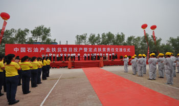 “中石油目前定點(diǎn)扶貧與對(duì)口支援涉及全國8個(gè)省區(qū)14個(gè)縣區(qū)!敝惺投c(diǎn)扶貧與對(duì)口支援領(lǐng)導(dǎo)小組副組長、總經(jīng)理助理李潤生在項(xiàng)目交接儀式上說,其中從2007年開始定點(diǎn)扶貧河南兩縣——臺(tái)前縣和范縣。幾年來,中石油把改善群眾基本生產(chǎn)生活條件作為扶貧工作著力點(diǎn),累計(jì)投入3000萬元,援建了中醫(yī)院、技能培訓(xùn)中心、中心小學(xué)、通村道路、飲水工程等10個(gè)民生工程。