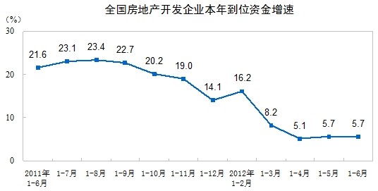 2012年1-6月份,全國(guó)房地產(chǎn)開(kāi)發(fā)投資30610億元,同比名義增長(zhǎng)16.6%(扣除價(jià)格因素實(shí)際增長(zhǎng)14.3%),增速比1-5月份回落1.9個(gè)百分點(diǎn)。其中,住宅投資20879億元,增長(zhǎng)12.0%,增速回落1.6個(gè)百分點(diǎn),占房地產(chǎn)開(kāi)發(fā)投資的比重為68.2%。