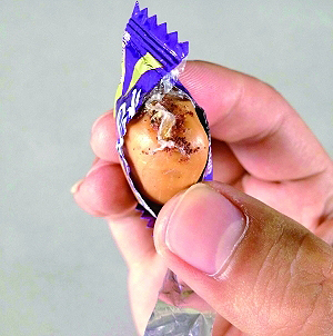 伊先生從超市發(fā)玉泉路店購(gòu)買一些散裝怡口蓮作喜糖,分給同事吃時(shí),其中一塊拆開(kāi)包裝后發(fā)現(xiàn)糖表面有異物,“看起來(lái)像蟲(chóng)子皮和蟲(chóng)子屎”。事后,超市給伊先生換了相等價(jià)值的大白兔奶糖,并將同批次貨物全下架。昨天,超市負(fù)責(zé)人稱已給廠家致函要求檢驗(yàn)生產(chǎn)源頭,并提高對(duì)此類商品的抽查力度。