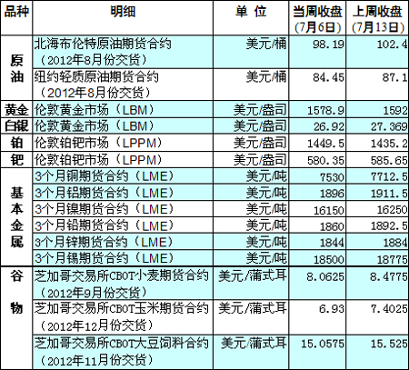 國際大宗商品期貨價格明細(xì)表[2012-07-16]