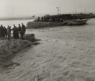 原巴彥淖爾盟盟委書記李貴(左三)在總排干開挖現(xiàn)場(chǎng)與干部群眾座談。