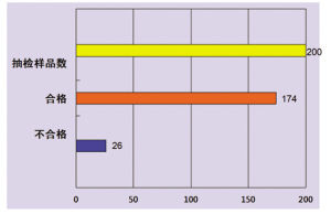 本次共抽查了北京、天津、河北、上海、江蘇、浙江、福建、山東、廣東9個省、直轄市的200家企業(yè)生產(chǎn)的200種兒童及嬰幼兒服裝產(chǎn)品。國家質(zhì)檢總局依據(jù)《國家紡織產(chǎn)品基本安全技術(shù)規(guī)范》GB18401等標準的要求,檢驗了纖維成分及含量、甲醛含量、pH值、耐水色牢度、耐干摩擦色牢度、耐濕摩擦色牢度、耐汗?jié)n色牢度、耐唾液色牢度、耐洗色牢度、可分解致癌芳香胺染料等10個項目。經(jīng)檢驗,有174種產(chǎn)品符合標準規(guī)定,產(chǎn)品合格率為87%,如北京英方日用塑膠制品有限公司嬰方喜品牌、北京銅牛集團有限公司的銅牛品牌、北京派克蘭帝有限責任公司的派克蘭帝、上海儀華服飾有限公司的SNOOPY史努比、耐克體育(中國)有限公司的耐克、石獅市頑石服裝有限公司的皮皮熊等產(chǎn)品。