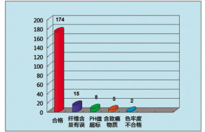 在抽查過程中,檢出26種產(chǎn)品的部分項目不達標,占抽查產(chǎn)品總數(shù)的13%,主要不合格項目是纖維成分及含量明顯不符,pH值、可分解致癌芳香胺染料和耐濕摩擦色牢度超標。