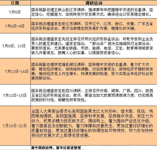 進入7月,中央高層頻繁奔赴各地摸底調(diào)研。據(jù)《中國證券報》16日報道,分析人士表示,未來加快基礎設施投資仍是拉動經(jīng)濟增長見效最快的方式。市場普遍預計,年中經(jīng)濟會議召開后有關部門有望出臺一系列旨在促進經(jīng)濟“穩(wěn)增長”的政策措施。報道稱,此輪“穩(wěn)增長”中,民間投資將發(fā)揮更加重要的作用。