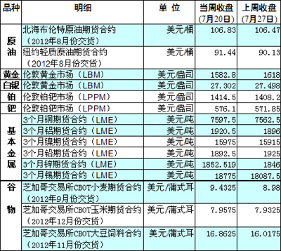 國際大宗商品期貨價格明細(xì)表