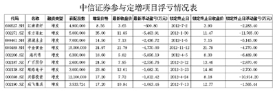 公開資料顯示,2011年中信證券參與了洪城水業(yè)、東方雨虹、廣百股份、順絡電子、海利得、興蓉投資、江南高纖、成飛集成、中金黃金等9家上市公司的定向增發(fā),占券商去年參與定增項目總數(shù)的六分之一,共計投入資金達12.14億元。按照相關規(guī)定,向特定發(fā)行對象增發(fā)的股份自發(fā)行結束之日起,12個月內(nèi)不得轉讓,鎖定期結束后,這部分股份才會進入二級市場流通。