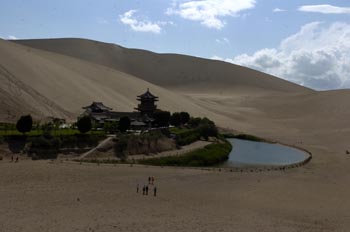 敦煌之名,最早見于《史記·大宛列傳》:“始月氏居敦煌,祁連間!睎|漢地理學(xué)家應(yīng)劭解釋敦煌為:“敦,大也;煌,盛也!贝蠛褪⒕褪情_拓和發(fā)達(dá),概括了敦煌的歷史地位和狀況。