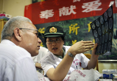 武警新疆邊防總隊(duì)醫(yī)院的醫(yī)生日前來到烏魯木齊市的友好新村幸福老年公寓開展愛民義診活動(dòng)。來自外科、內(nèi)科、口腔科和中醫(yī)保健科的醫(yī)生為生活在這里的八十多位老人進(jìn)行了體檢,并免費(fèi)贈(zèng)送了針對老年疾病的醫(yī)藥和保健品。這也是武警新疆邊防總隊(duì)醫(yī)院連續(xù)十二年到幸福老年公寓開展愛民義診活動(dòng)。
