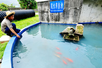 福建長(zhǎng)樂(lè)亞新污水處理有限公司處理后的尾水養(yǎng)魚(yú)池。記者