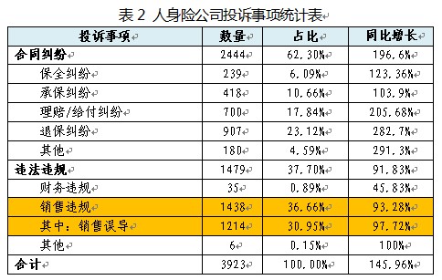 (二)人身險(xiǎn)公司的投訴事項(xiàng)類(lèi)型