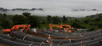 “中緬油氣管道建設(shè)已進(jìn)入決戰(zhàn)階段。”中石油管道局副局長、中緬油氣管道EPC項目部總經(jīng)理高建國介紹說,“目前是緬甸的雨季,管道施工重型設(shè)備集結(jié)于此,先要逐一進(jìn)行檢修保養(yǎng),等進(jìn)入10月份雨季一結(jié)束,便打響若開山戰(zhàn)役,中緬管道建設(shè)將迎來新一輪施工高潮!