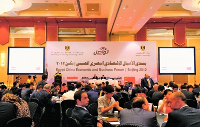 埃及新任總統(tǒng)穆罕默德·穆爾西28日至30日對華訪問,80位埃及企業(yè)家組成的商務(wù)代表團隨總統(tǒng)訪華,向中國推介埃及商貿(mào)環(huán)境。埃及投資部部長奧薩馬·沙里主持了28日在北京舉行的埃中經(jīng)濟論壇。據(jù)悉,論壇將持續(xù)兩天,約200家中國企業(yè)與會,埃及企業(yè)家來自基礎(chǔ)設(shè)施、建筑、石化、醫(yī)藥、紡織和旅游等行業(yè)。
