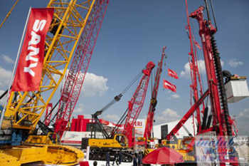 2010年4月19日,三一重工攜起重機械、路面機械等7大類26臺產(chǎn)品,參加第29屆慕尼黑國際工程機械博覽會。 資料照片 |