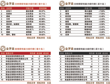 同樣,商業(yè)貿(mào)易行業(yè)分析師馮先濤、有色金屬行業(yè)分析師巨國賢、煤炭開采行業(yè)分析師沈濤也因過分看好個(gè)股后市而拖累其薦股成績,他們分別推薦的中化國際、正海磁材、煤氣化在20個(gè)交易日內(nèi)最高漲幅-4.43%、-3.40%、-3.04%的成績,而這三只個(gè)股最大跌幅已經(jīng)分別超11%、20%、15%。