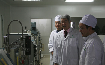 魯南制藥集團(tuán)董事長(zhǎng)趙志全在指導(dǎo)科研人員 |